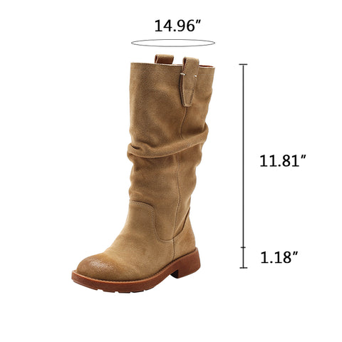 디자이너 스웨이드 가죽 니하이 부츠 폴드 디자인 라이딩 부츠(블랙/브라운/살구/커피)