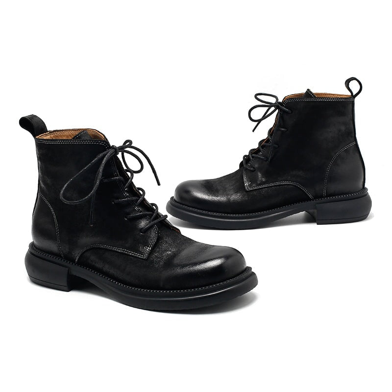 펑크 스타일 사이드 지퍼 라운드 발가락 디자인, 대부분의 발 모양에 적합, 중유 양가죽 부드러움, 편안하고 스탠드 마모 및 찢어짐.왁스 처리된 라운드 맞춤형 신발끈.