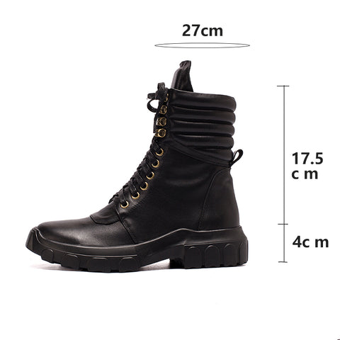 패션 소가죽 전투 부츠 디자이너 복고풍 청키 라이딩 부츠 블랙