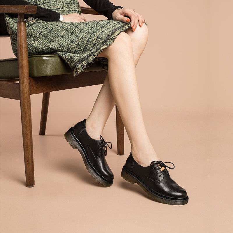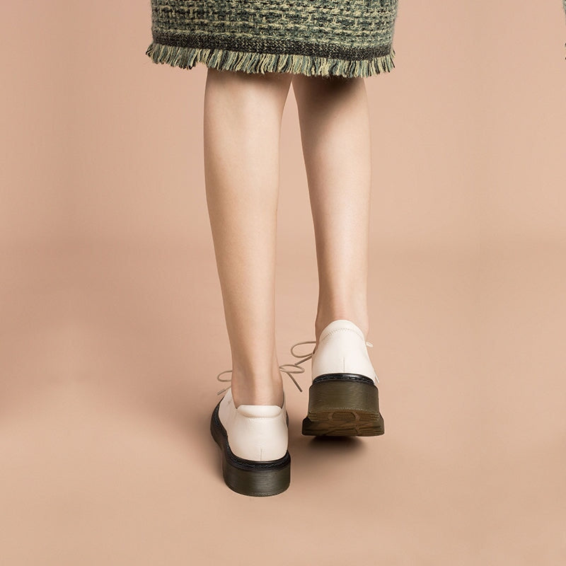 Dwarves Handmade Full Grain Leather Lace Up Oxfords Shoes For Women Martin Sole In White/Black