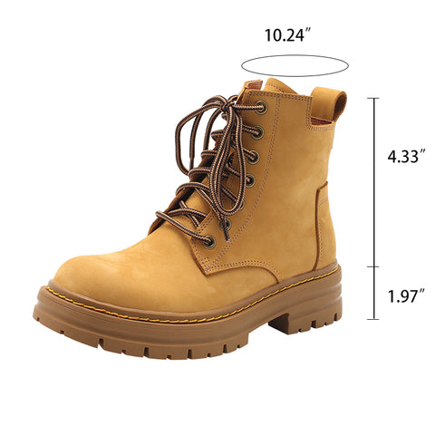옐로우 플랫폼 방수 누벅 송아지 가죽 여성용 핸드메이드 하이 레이스업 부츠