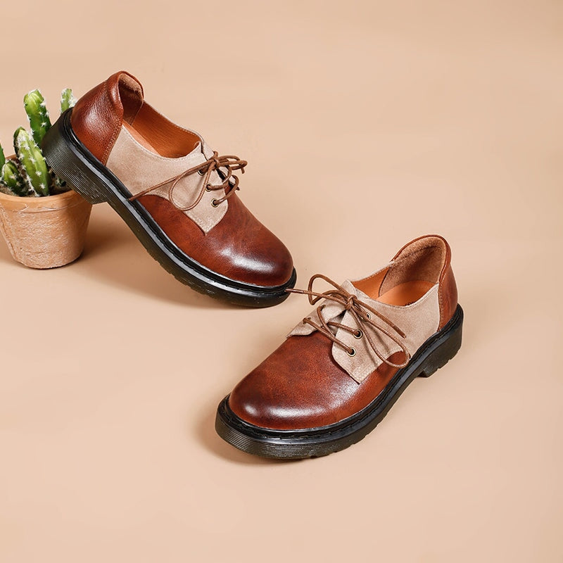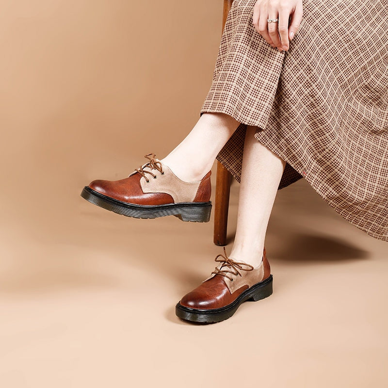 Dwarves Handmade Vegetable Tanned Leather Lace Up Oxfords Shoes For Women Martin Sole