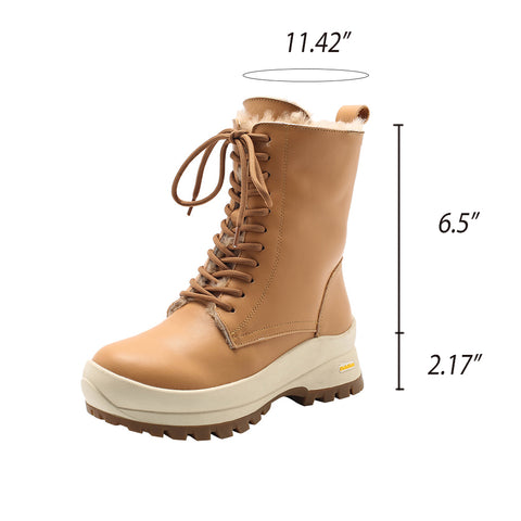 가죽 전투 부츠 디자이너 청키 라이딩 부츠 살구/블랙/브라운/화이트 소재의 시어링 안감 있음