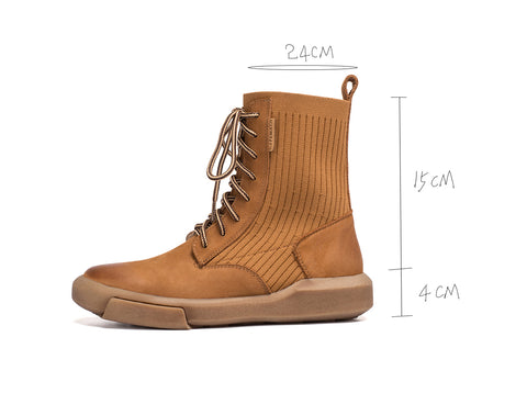 무광택 가죽 전투 부츠 레이스 업 마틴 부츠 짧은 봉제 안감 또는 가죽 선택 브라운/블랙/베이지