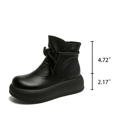 여성을 위한 라운드 발가락 플랫폼 부츠 블랙/커피 핸드메이드 레이스업 가죽 디자이너 발목 부츠