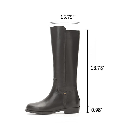 디자이너 와이드 핏 가죽 니하이 부츠 블랙 색상의 짧은 플러시 라이닝 사이드 지퍼 라이딩 부츠