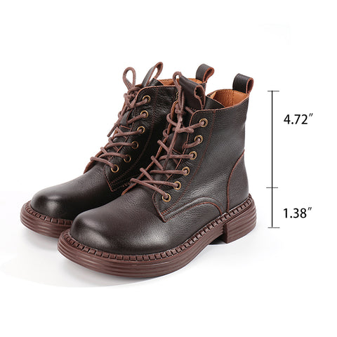 여성용 빅 토 마틴 부츠 블랙/커피 핸드메이드 레이스업 가죽 앵클 부츠