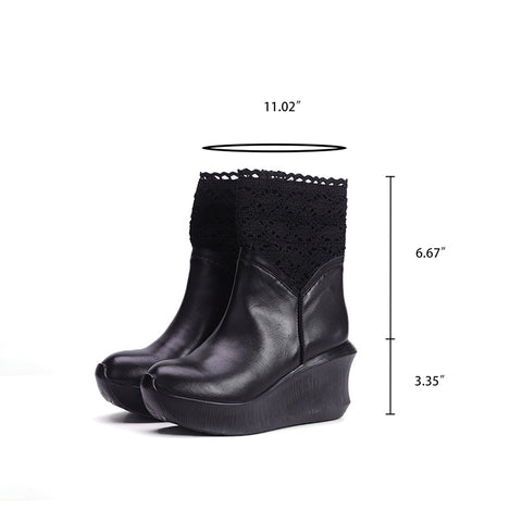 여성용 85mm 웨지 앵클 부츠 블랙/커피 핸드메이드 가죽 디자이너 부츠