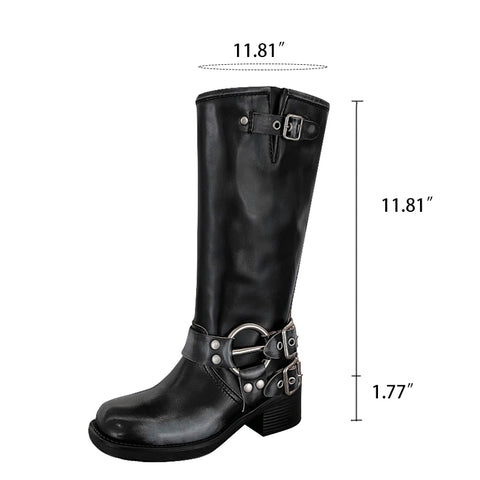 여성을위한 정품 가죽 키 부츠 서부 카우보이 부츠 라이딩 부츠 빅 라운드 발가락