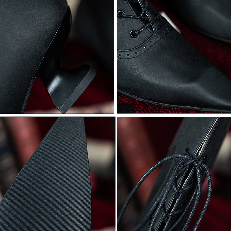 These vintage-inspired Gothic Victorian boots are handmade from matte soft cowhide leather, featuring a pointed toe, brogue stitching, and a unique 50mm sculpted heel that exudes dark elegance. The lace-up design and non-slip rubber sole provide both comfort and stability. Perfect for those who love witchcore, dark academia, or vintage Gothic fashion, these mid-calf boots blend historical charm with a modern, mysterious allure.