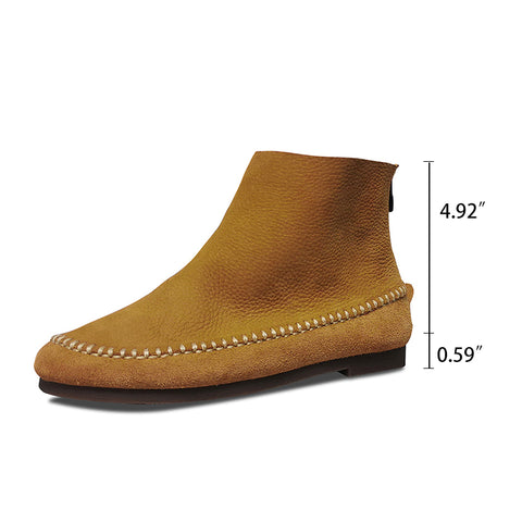 수제 부드러운 가죽 발목 부츠 레트로 라운드 발가락 짧은 부츠 여성 첼시 부츠 뒷 지퍼 커피/그레이/브라운