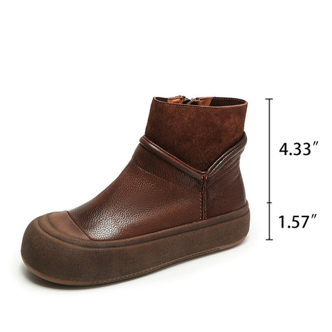 그레이/커피 핸드메이드 여성용 가죽 40mm 플랫폼 앵클 부츠