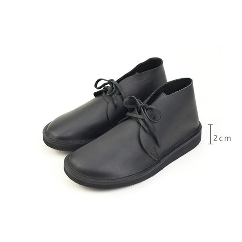 Middle English-여성 핸드메이드 풀 그레인 가죽 플랫 앵클 부츠 - 블랙/브라운