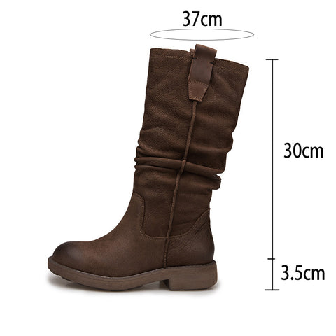 누벅 가죽 미드 카프 부츠 폴드 디자인 라이딩 부츠 짧은 봉제 안감 또는 가죽 선택 가능 커피/블랙