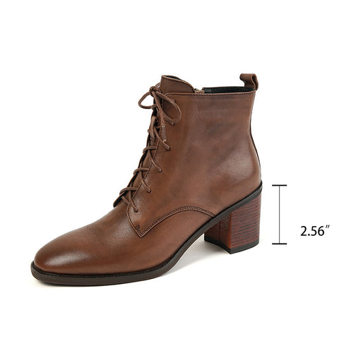 하이힐 부츠 사이드 지퍼 소가죽 앵클부츠 소프트 워킹 숏부츠 브라운/블랙