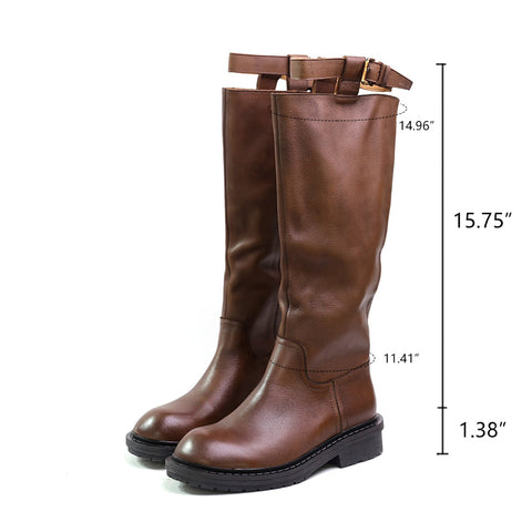 뒷면 지퍼 스타일, 오프닝의 벨트 및 버클 장식, 블록 힐 및 중간 종아리 길이, 고른 소가죽 부드러움, 편안하고 스탠드 마모. 봄, 여름, 가을, 겨울에 딱 맞는 면 안감과 천연 가죽 안창으로 자유롭게 호흡하세요.