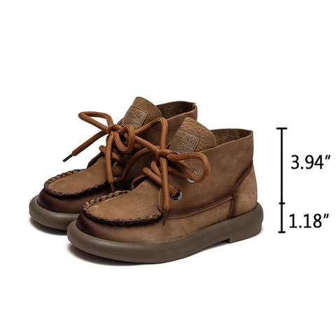 여성용 라운드 발가락 겨울 부츠 옐로우/그레이/브라운/카멜 컬러의 레이스업 가죽 디자이너 발목 부츠