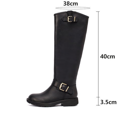 크레이지 호스 가죽 니 하이 부츠 웨스턴 카우보이 부츠 레트로 라이딩 부츠 짧은 플러시 커피/블랙