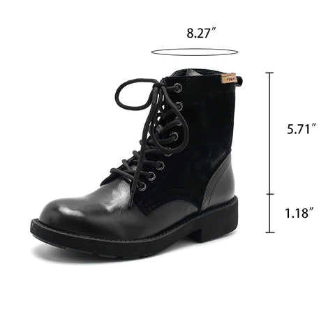 여성용 가죽 마틴 부츠 레이스 업 짧은 부츠 블랙/블랙 짧은 플러시 소재 핸드메이드