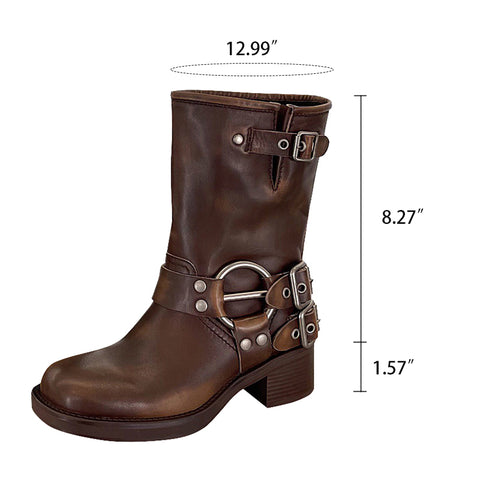 이 웨스턴 부츠는 소가죽으로 제작되었으며 카우보이에서 영감을 받은 버클과 청키한 힐이 특징입니다. 편안하고 긴 다리를 보여줍니다. 각 신발은 숙련된 장인이 수선합니다. 수년 동안 착용할 수 있습니다.