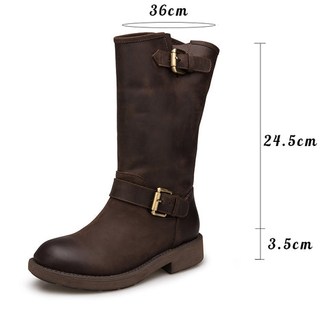 크레이지 호스 가죽 미드 카프 부츠 웨스턴 카우보이 부츠 레트로 라이딩 부츠 브라운/커피/블랙