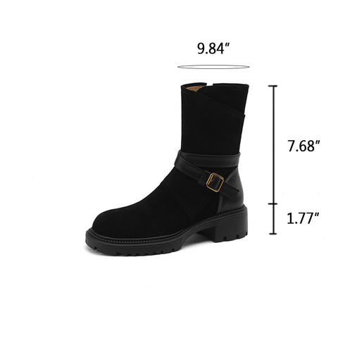 브라운/블랙 겨울 버클 부츠용 여성용 스웨이드 가죽 미드 카프 부츠