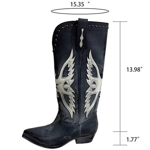 여성용 웨스턴 자수 부츠 레트로 스타일 - 블랙 대비 스티치 카우보이 부츠