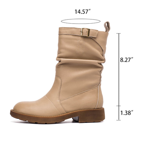 부드러운 가죽 중반 송아지 부츠 겨울용 접이식 디자인 라이딩 부츠 짧은 플러시 안감