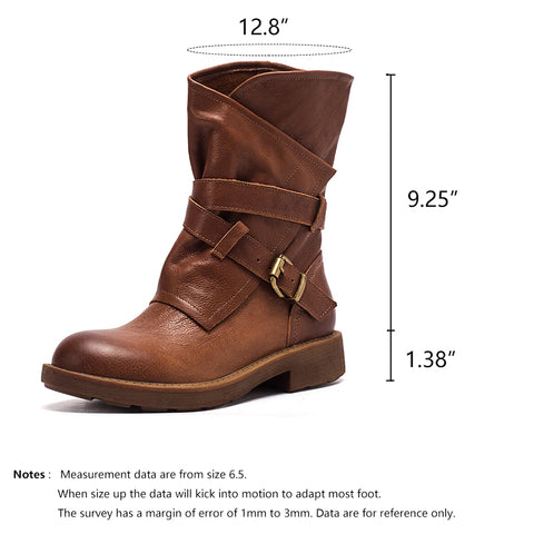 여성용 레트로 가죽 미드 카프 부츠 겨울 버클 부츠 커피/브라운/블랙