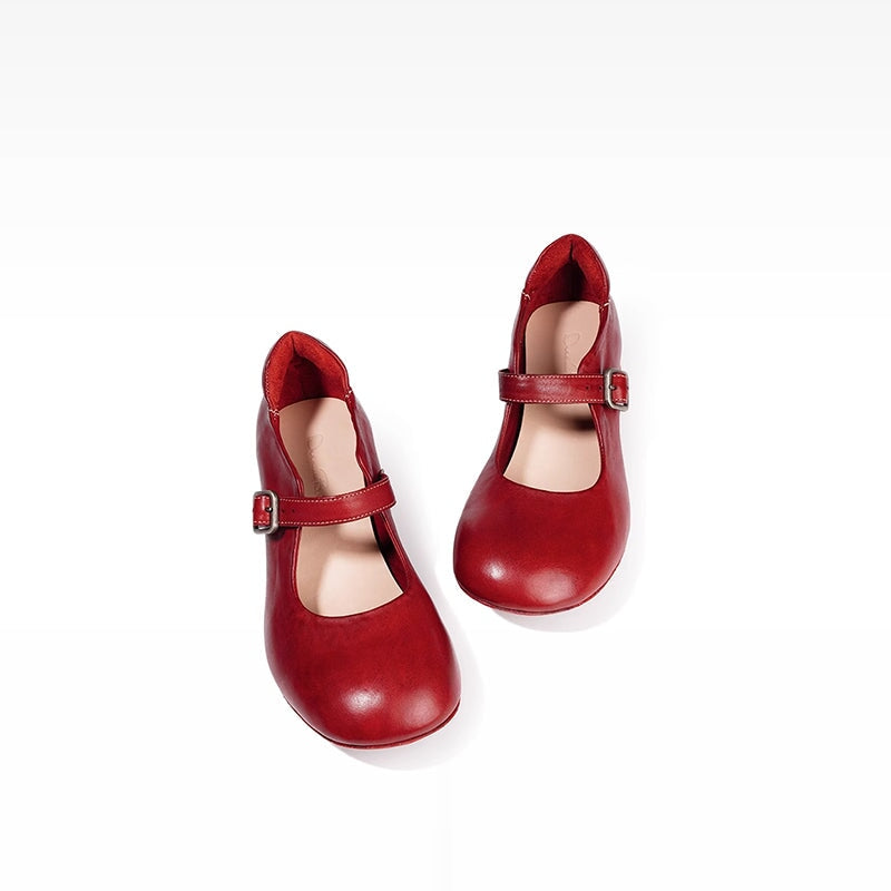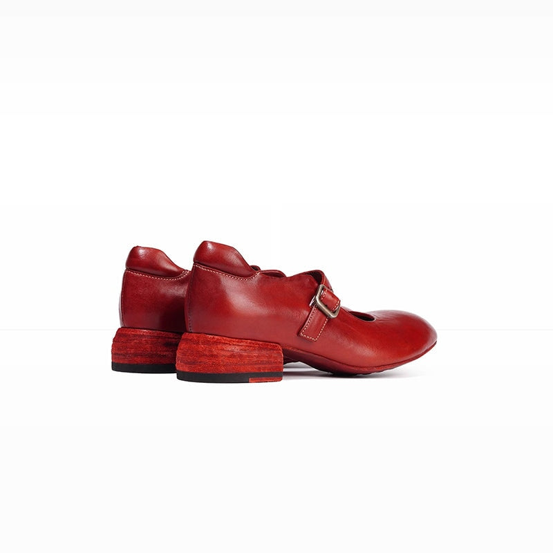 Handmade Retro Casual Mary Jane Horse Leather Shoes for Women in Cinnabar Red/Blackish Green