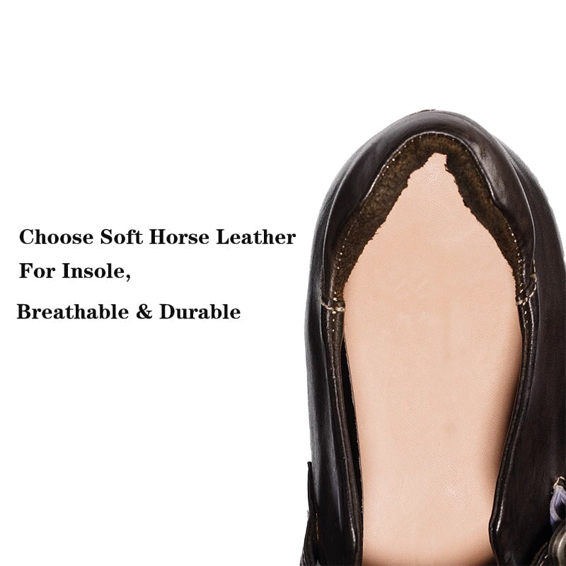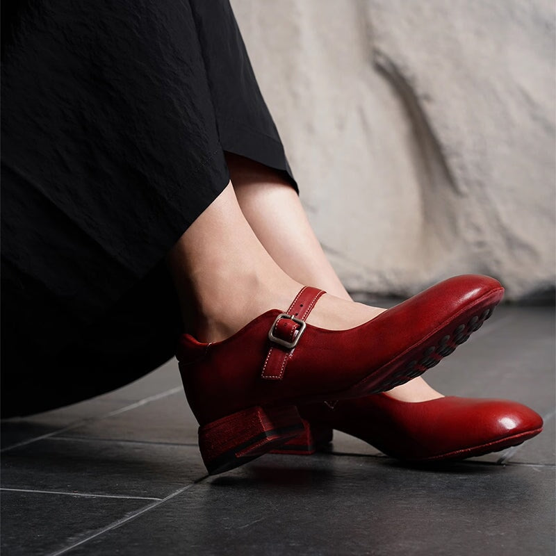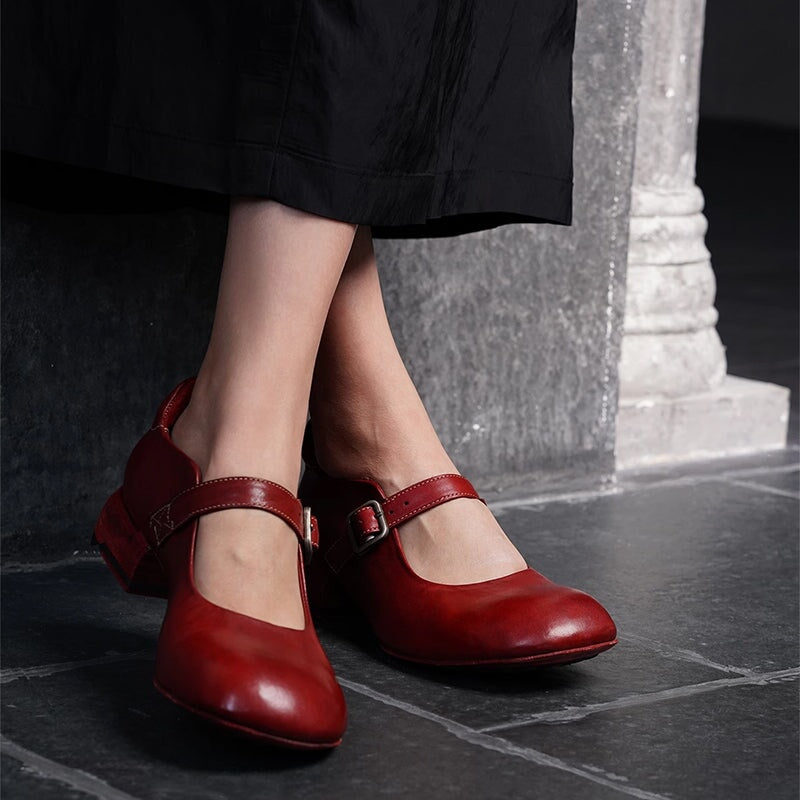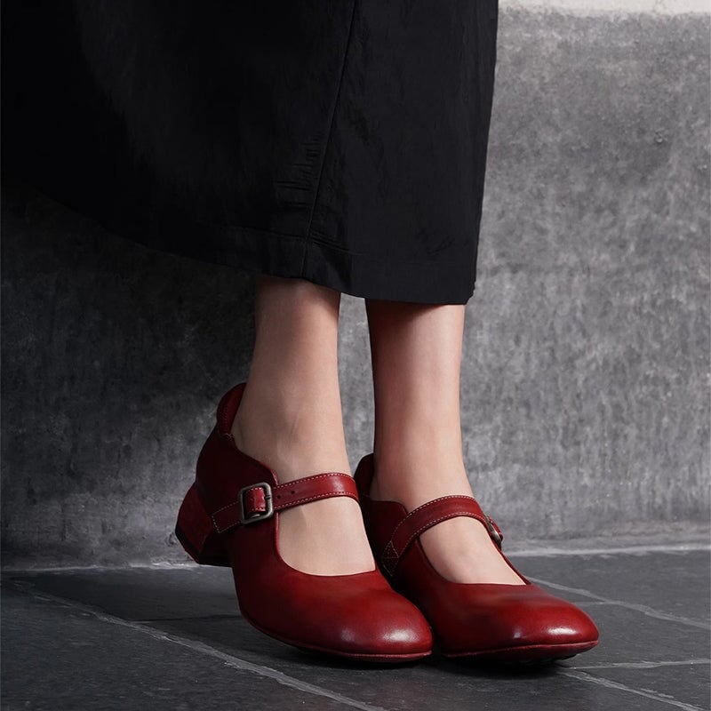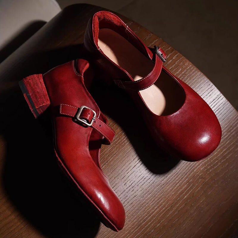 Channel timeless elegance with these Handmade Retro Mary Jane Shoes, crafted from premium horsehide leather. Featuring a round toe and comfortable block heel, these vintage-inspired shoes combine artisanal quality with casual everyday style. Features a foam-padded heel collar that prevents chafing and adds extra comfort around the ankle. The secure buckle strap adds a classic Mary Jane silhouette, while the leather-lined interior ensures long-lasting comfort and breathability.