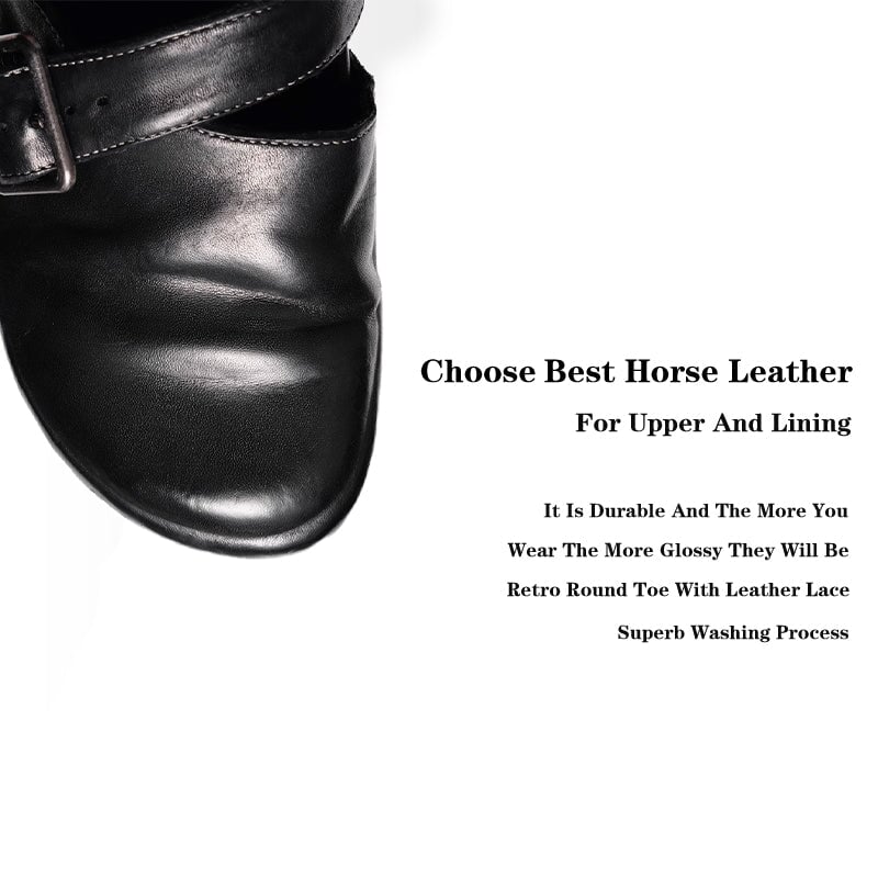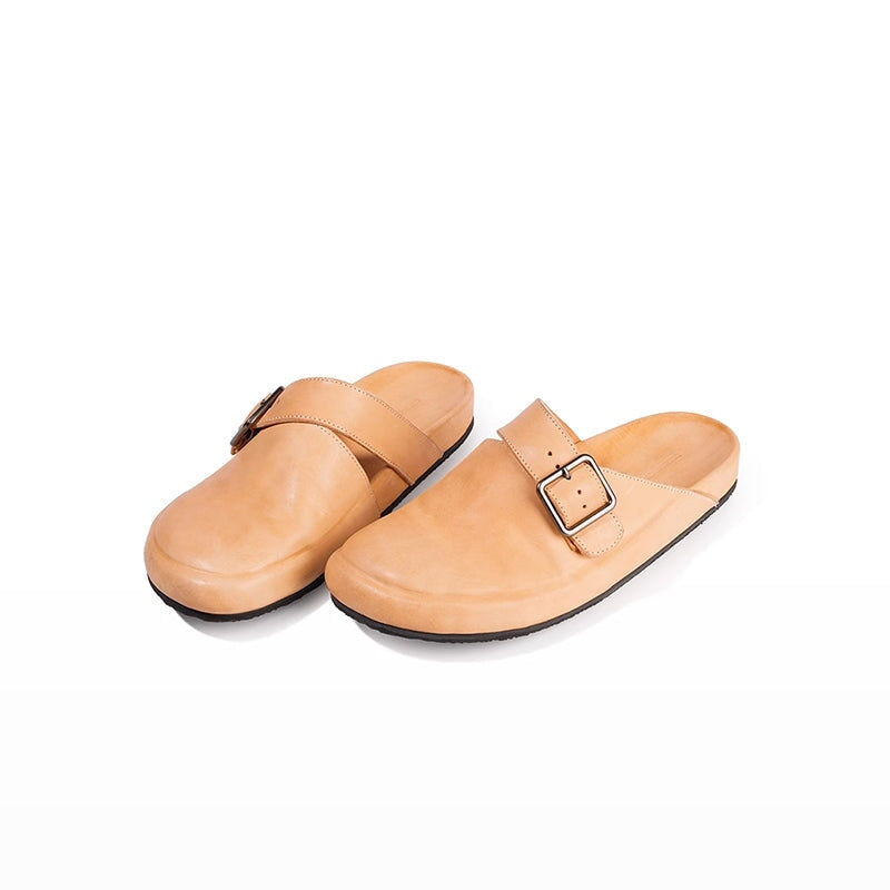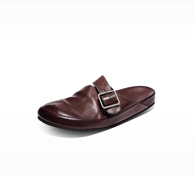 Step into effortless comfort with these women's casual flat slippers made from soft washed horsehide leather. Featuring a classic round toe, adjustable buckle strap, and cushioned footbed inspired by Birkenstock style, these slip-ons are perfect for everyday wear. The natural leather texture and vintage finish add a rugged, timeless charm to your look. Ideal for casual, laid-back outfits with a touch of handcrafted character.