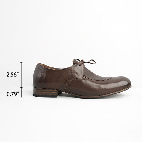 여성용 라운드 토 옥스포드 블랙/커피 말 가죽 레이스 업 더비 슈즈