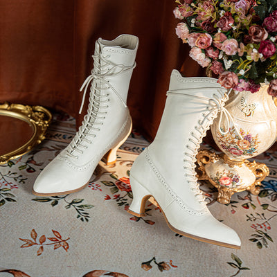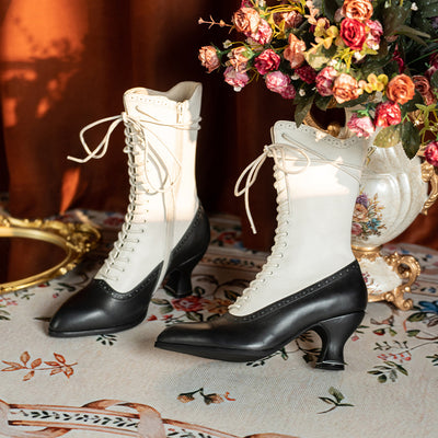 블록힐 부츠 백지퍼 소가죽 앵클부츠 소프트 워킹 숏부츠 화이트/블랙