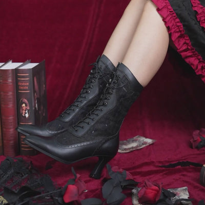 여성용 레트로 리본 첼시 부츠 블랙 가죽 플랫폼 부츠