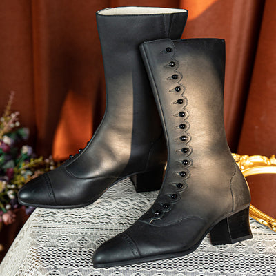 여성용 스웨이드 가죽 미드 카프 부츠 45mm 블록 힐 버클 디...