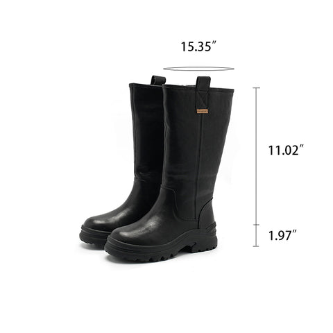 드워프 가죽 니하이 부츠 스노우 부츠 추운 겨울을 대비해 시어링 안감을 댄 블랙/브라운/커피 컬러
