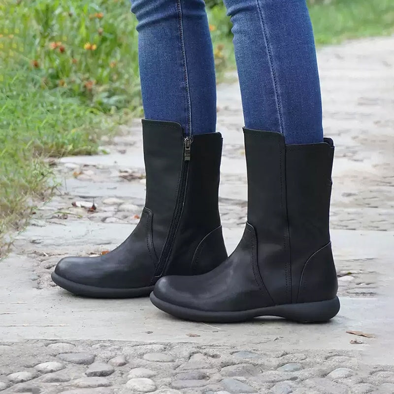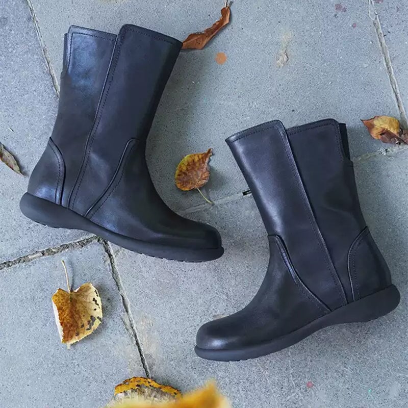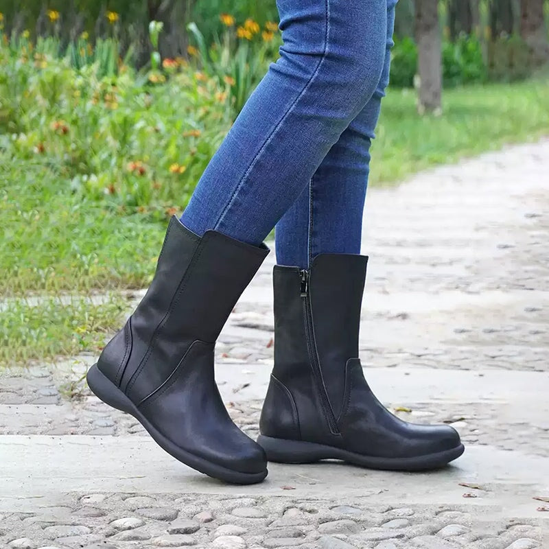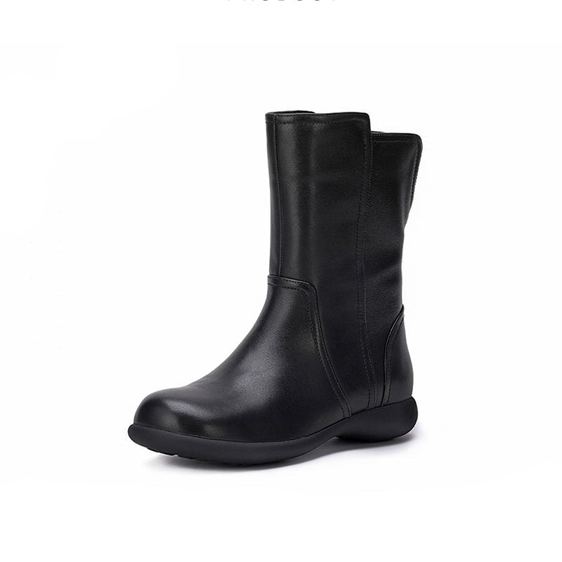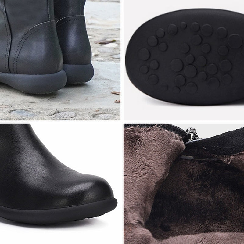 추운 겨울을 위한 여성용 레트로 가죽 짧은 부츠 블랙 짧은 플러시 라이닝 사이드 지퍼