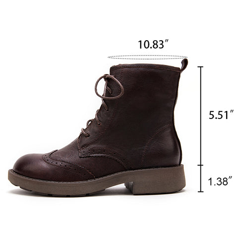 여성용 수제 가죽 윙팁 브로그 앵클 부츠 블랙/레드 브라운 라운드 발가락 옥스포드 부츠