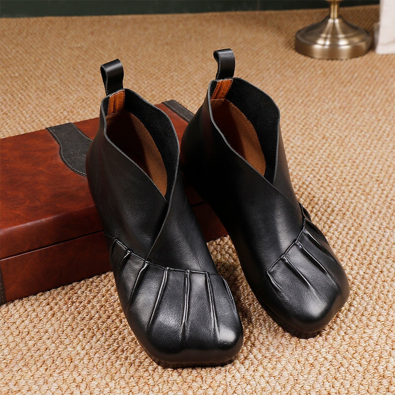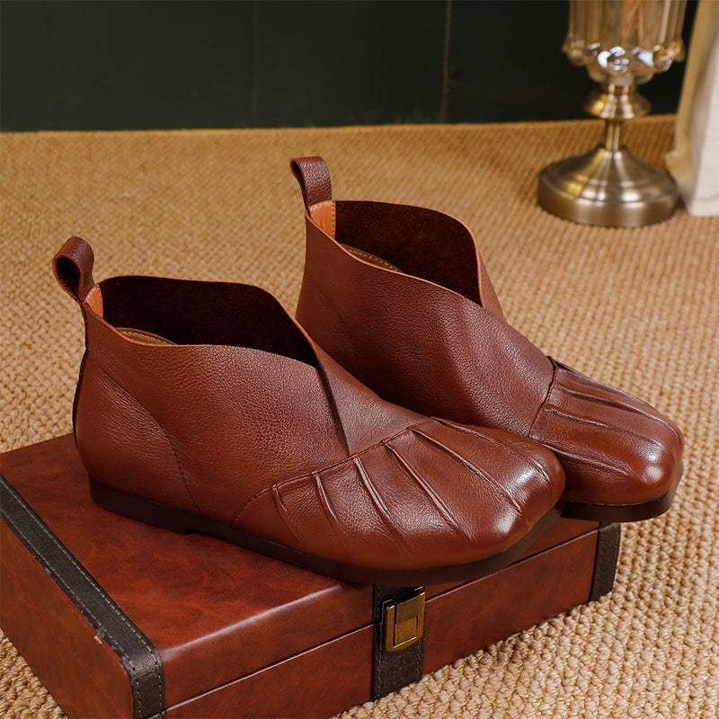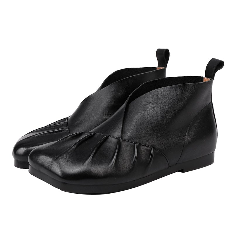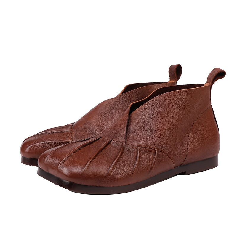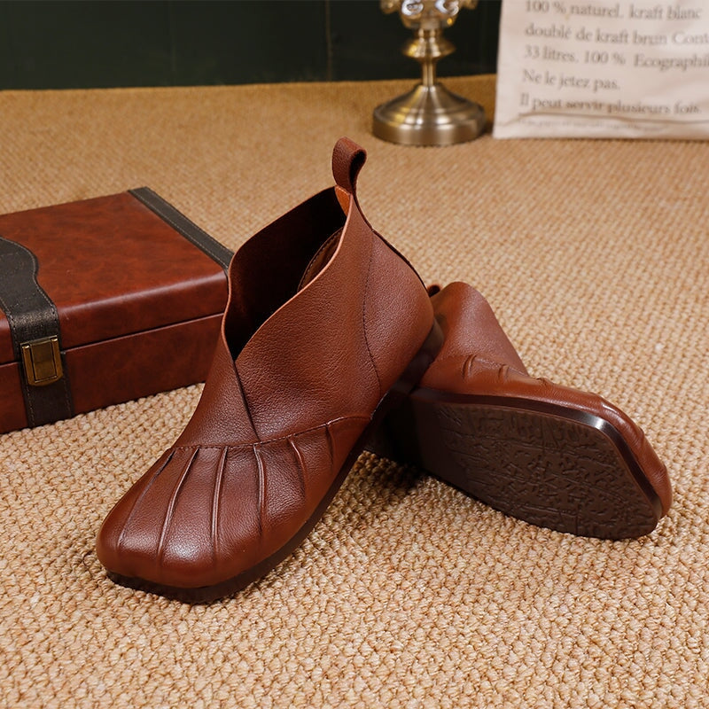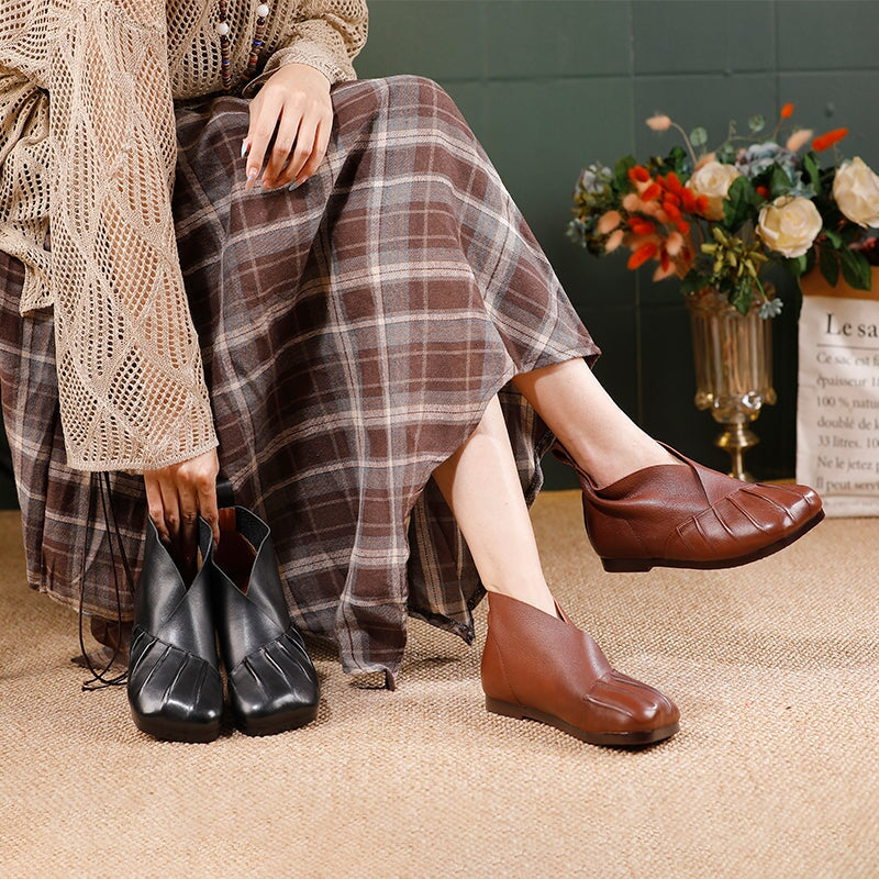 여성을위한 수제 가죽 첼시 부츠 소프트 앵클 부츠 가을과 겨울을위한 레트로 라운드 발가락 짧은 부츠 커피/블랙