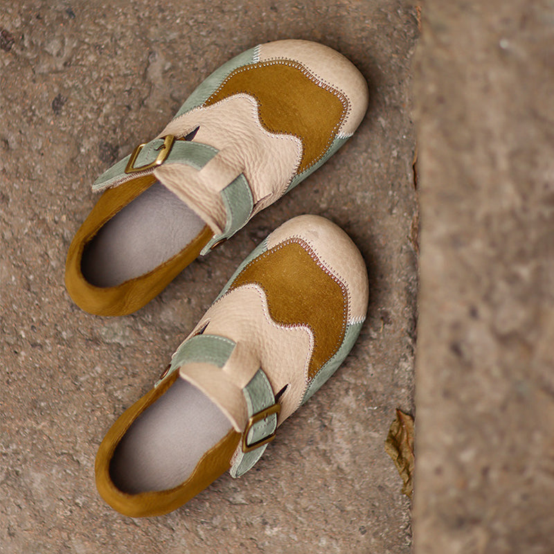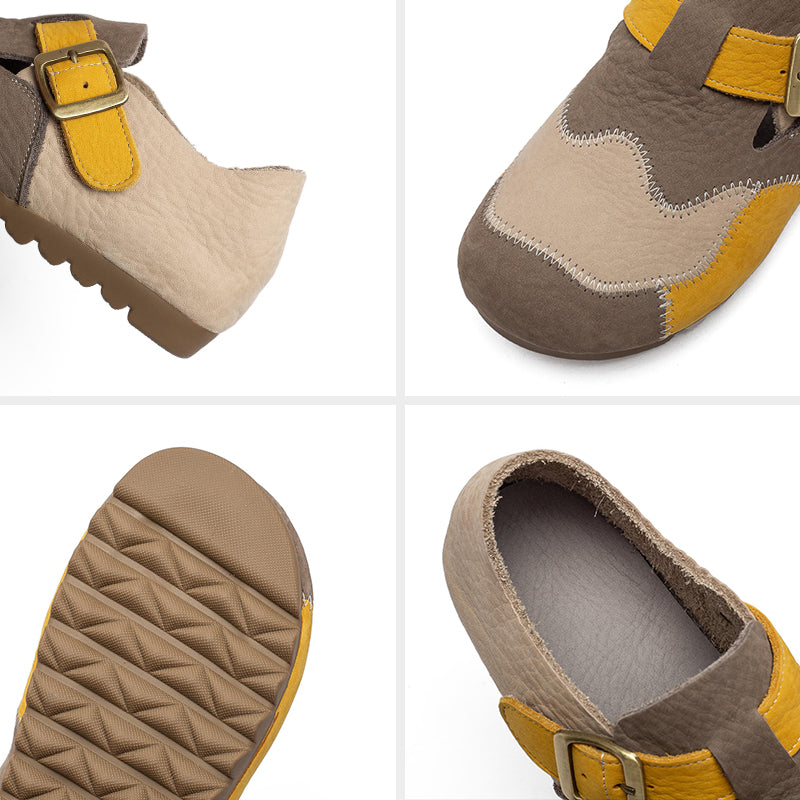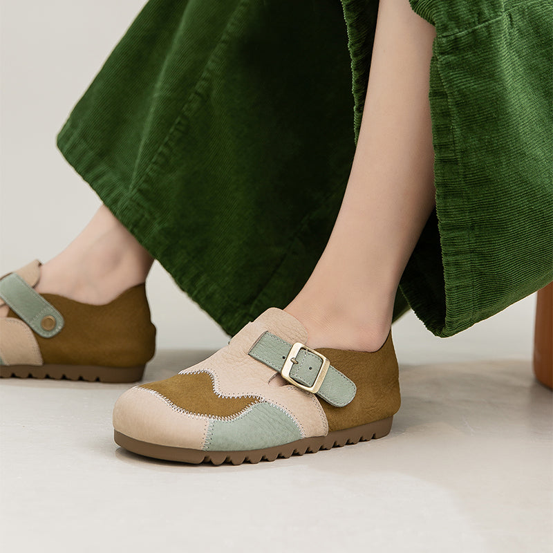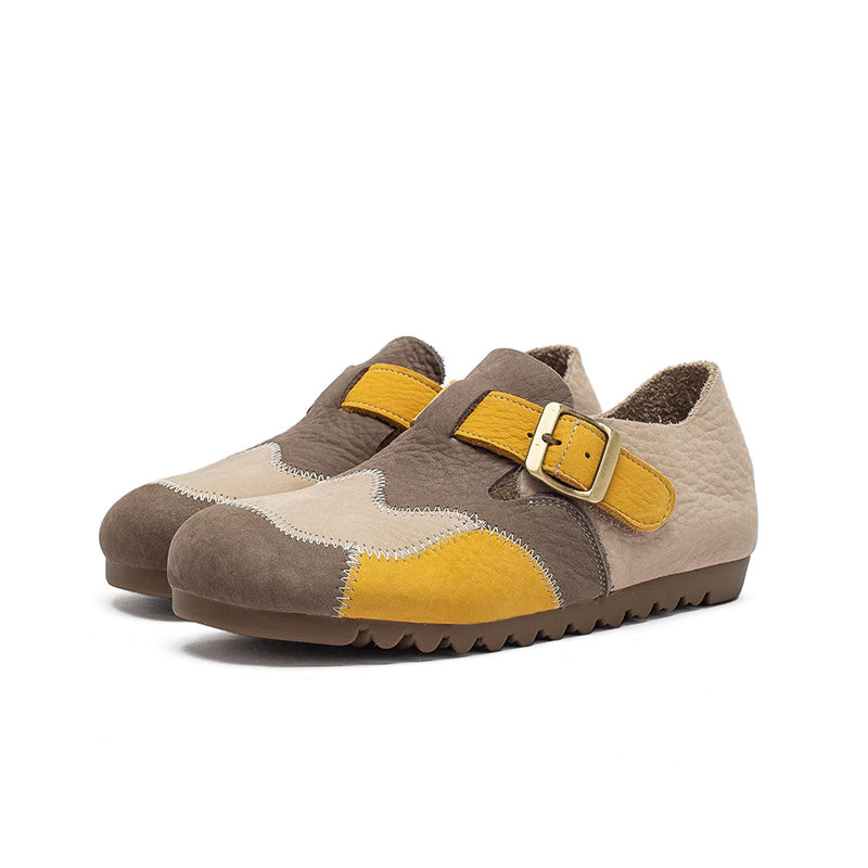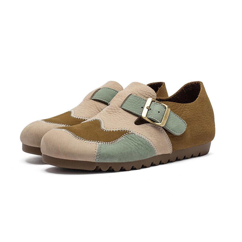 레트로 라운드 토 디자인, 브러시아웃 누벅 가죽 갑피, 부드럽고 편안한 고무 밑창, 버클이 있는 발등 스트랩, 쉽게 신고 벗을 수 있고 자연스럽고 신선한 스타일.