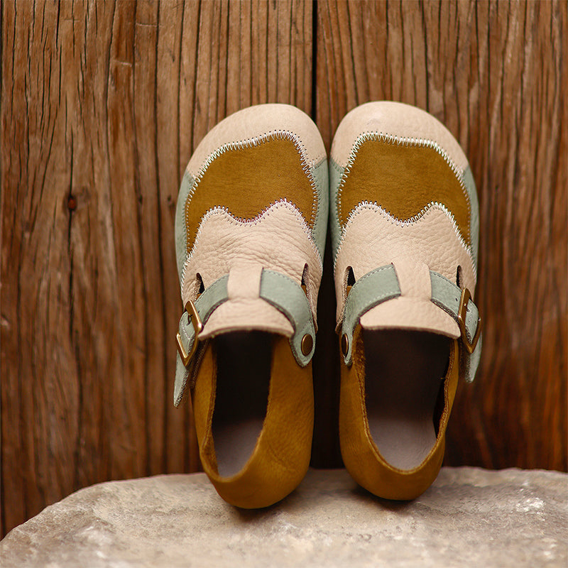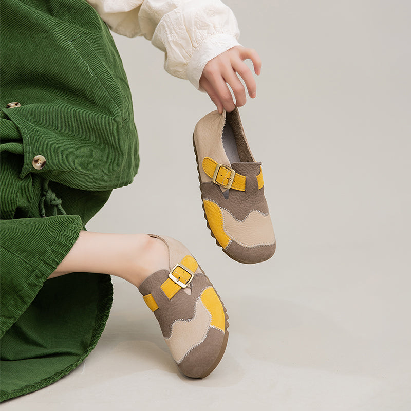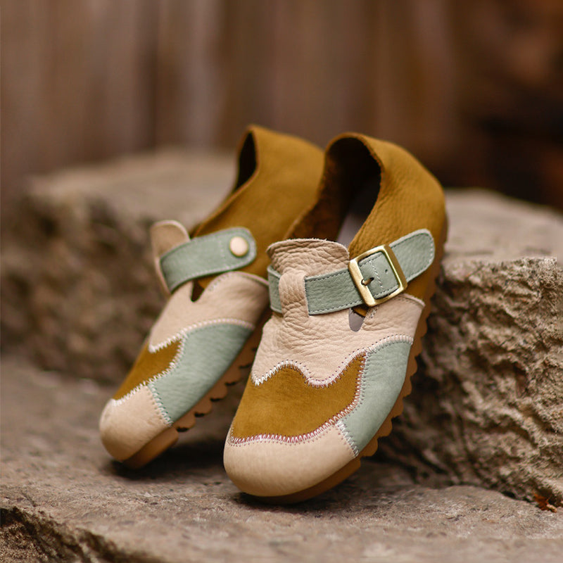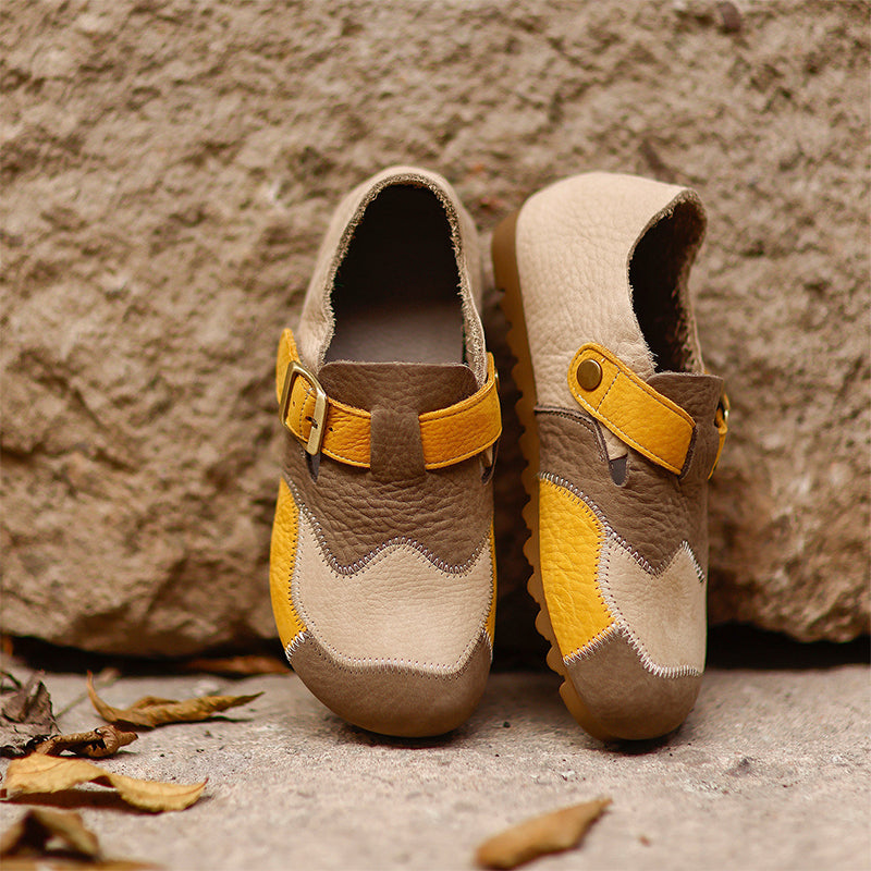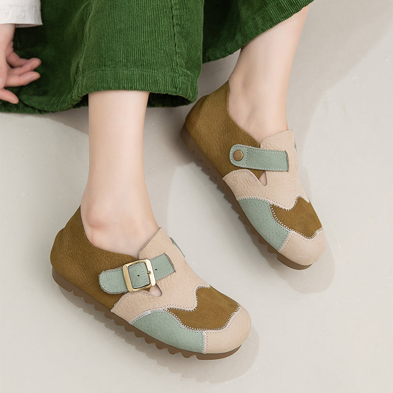 레트로 라운드 토 디자인, 브러시아웃 누벅 가죽 갑피, 부드럽고 편안한 고무 밑창, 버클이 있는 발등 스트랩, 쉽게 신고 벗을 수 있고 자연스럽고 신선한 스타일.