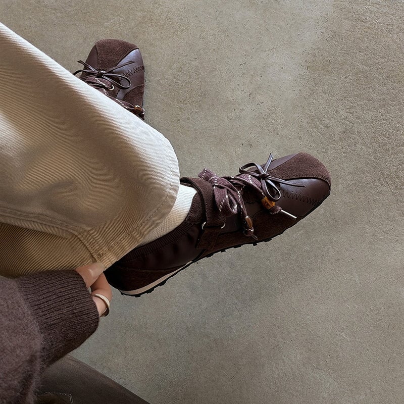 여성용 가죽 및 메쉬 플랫폼 스니커즈 타이어 스니커즈 로우탑 레이스업 대비색