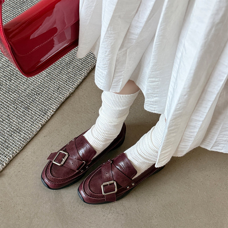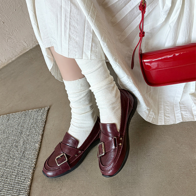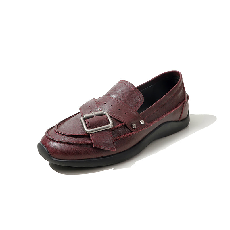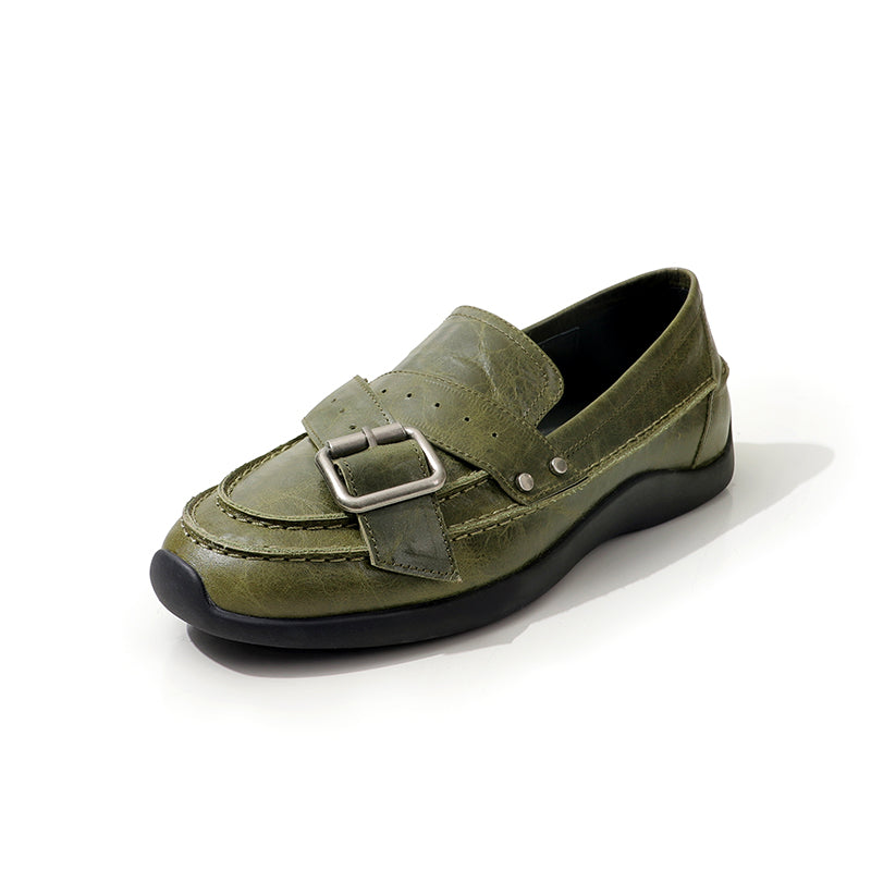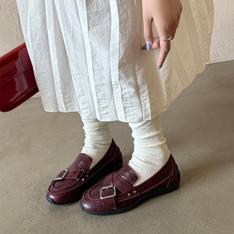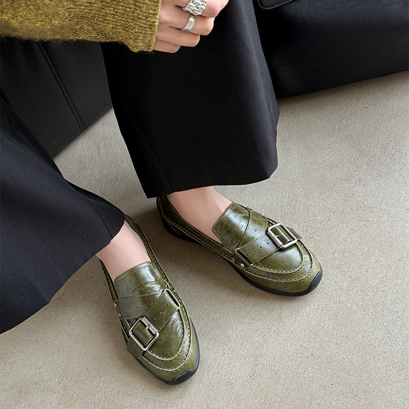 여성을 위한 수제 갈색 가죽 신발 레트로 로퍼 작업 신발 슬립온 신발