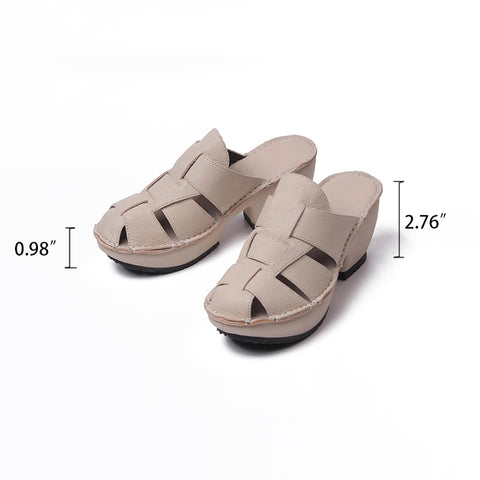 우븐 가죽 여름 슬리퍼 옐로우/블랙/베이지 색상의 블록 힐 피쉬맨 스타일 뮬