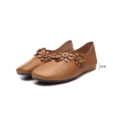 디자이너 신발 정품 가죽 스위트 플라워 여성용 슬립온 핸드메이드 플랫 브라운/카키/블랙/레드