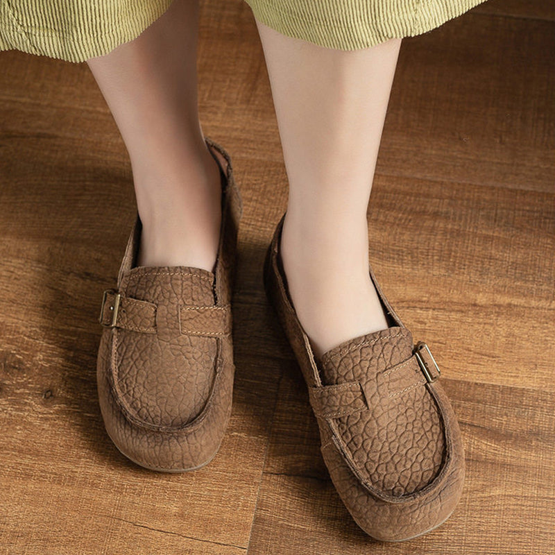 부드러운 가죽 라운드 토 슬립온 로퍼 카키/커피 터치 스트랩