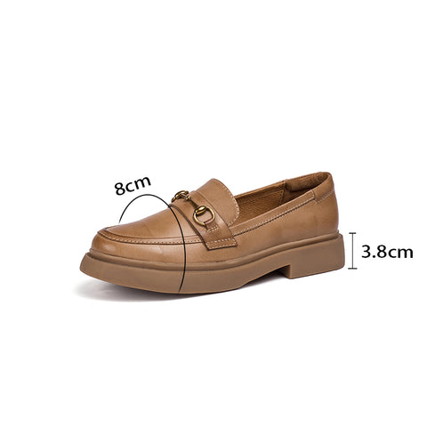 여성 수제 양가죽 브로그 로퍼 금속 단추 장식 브라운/블랙/커피