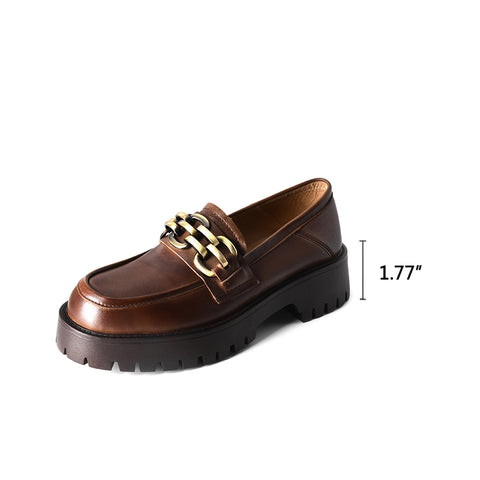 홀스빗 디테일 핸드메이드 가죽 플랫폼 로퍼 여성용 블랙/커피