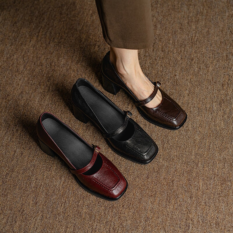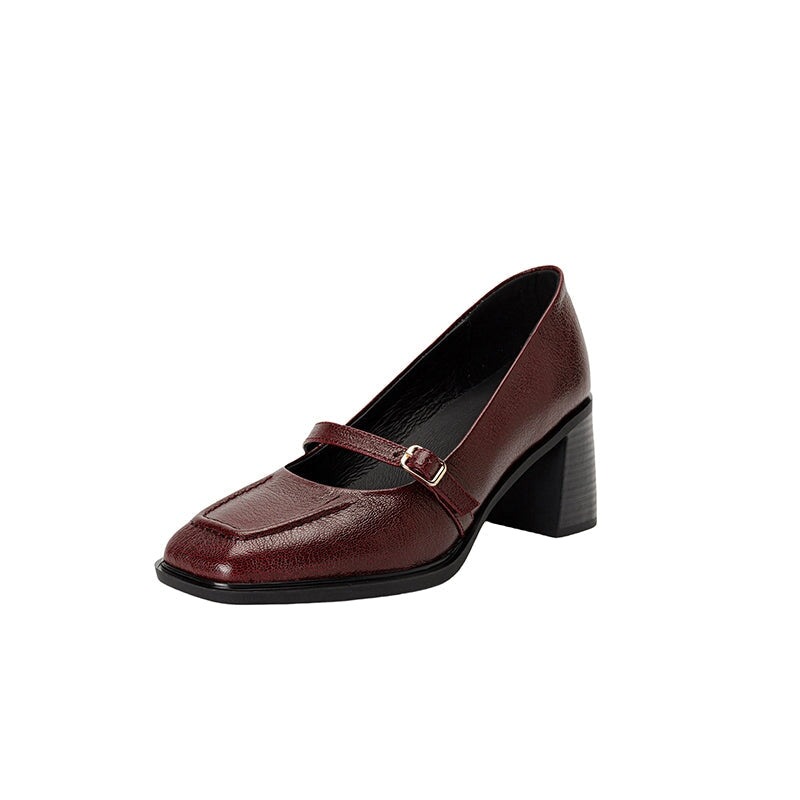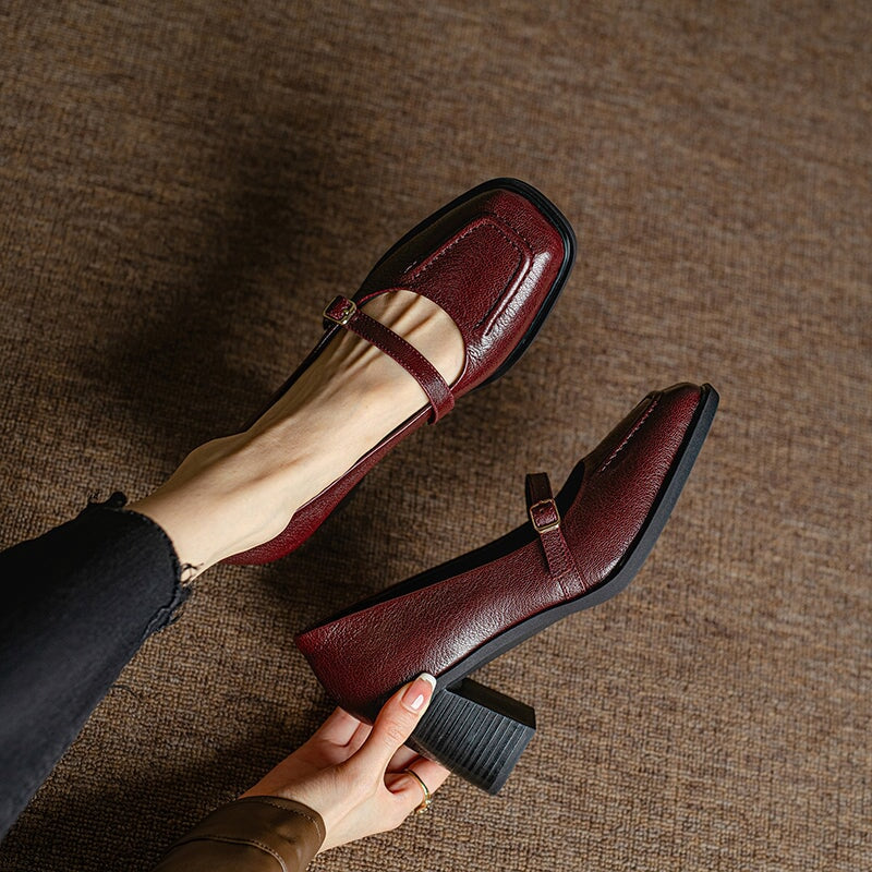 정품 가죽 메리제인 펌프스 슬링백 45mm 블록 힐 샌들(레드/블랙 색상)